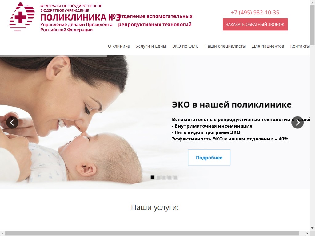 Отделение вспомогательных репродуктивных технологий ФГБУ «Поликлиника №3» - современная клиника ЭКО (экстракорпорального оплодотворения) и лечения бесплодия в Москве. Тел. +7(495)982-10-35